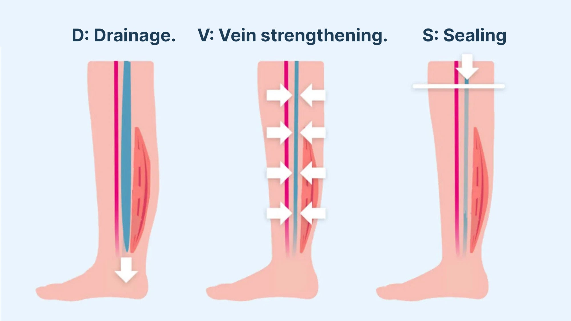 The DVS method explained simply (Drainage, Vein Strengthening, and Sealing)