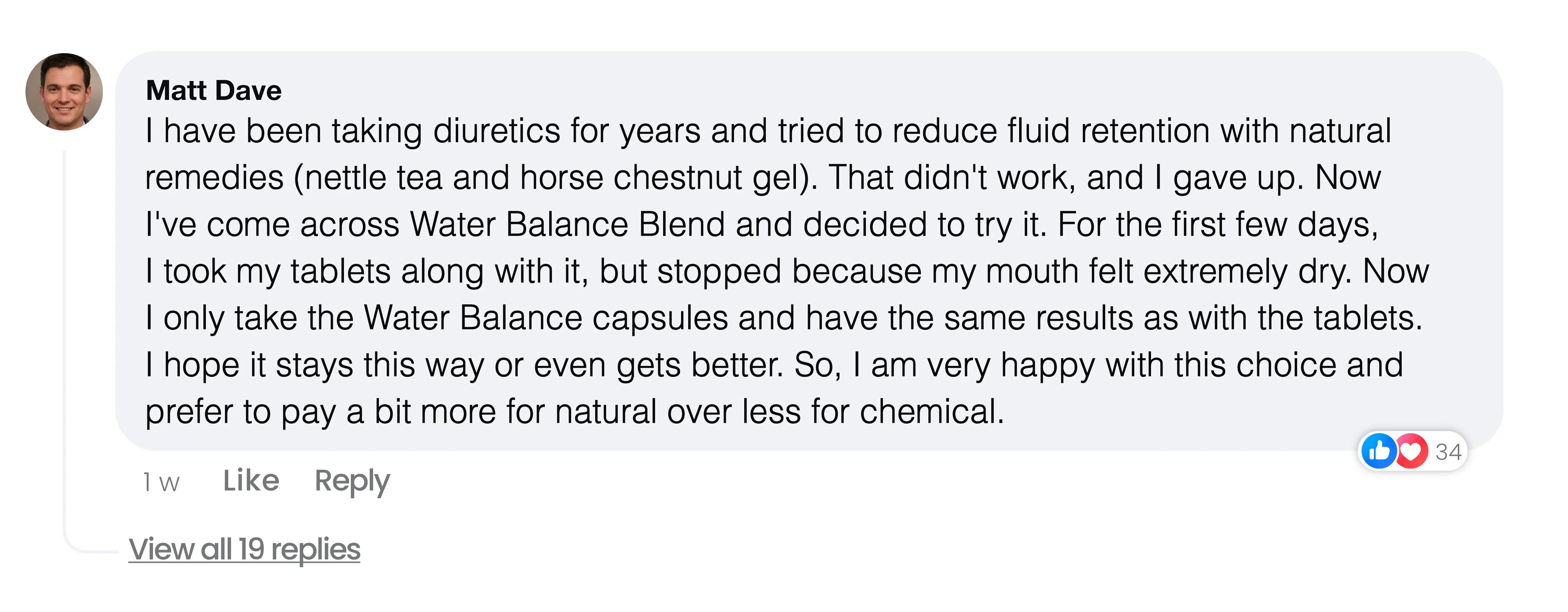 By the way: the manufacturer recommends drinking at least 2 liters of water per day while using Water Balance. The idea is not to dehydrate yourself!